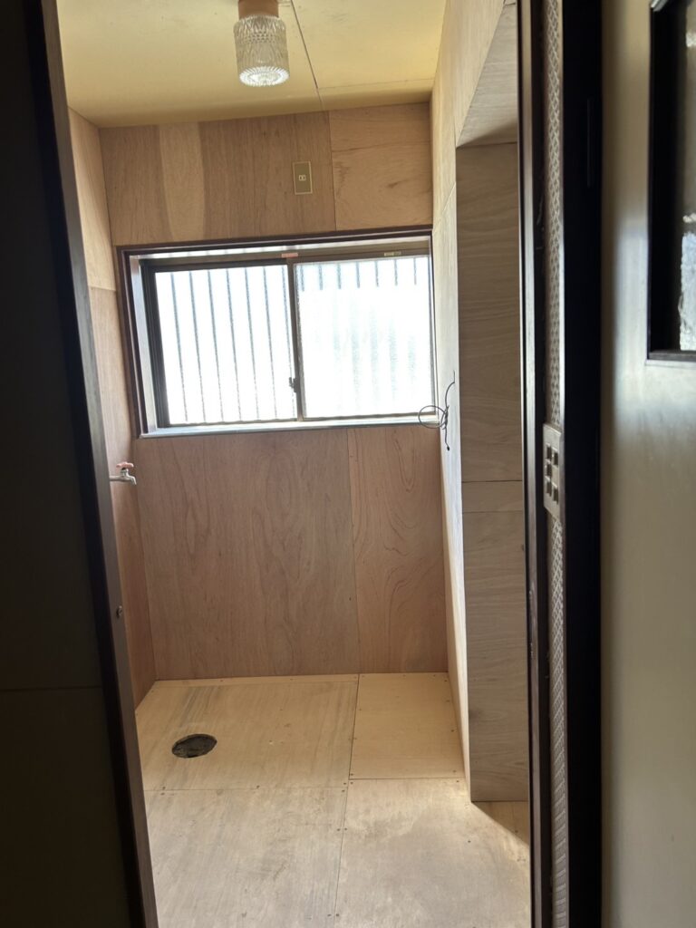 近畿総合リフォームでは、古い設備を撤去した後、洗面室の天井・壁・床の下地工事からしっかりとやり直します。