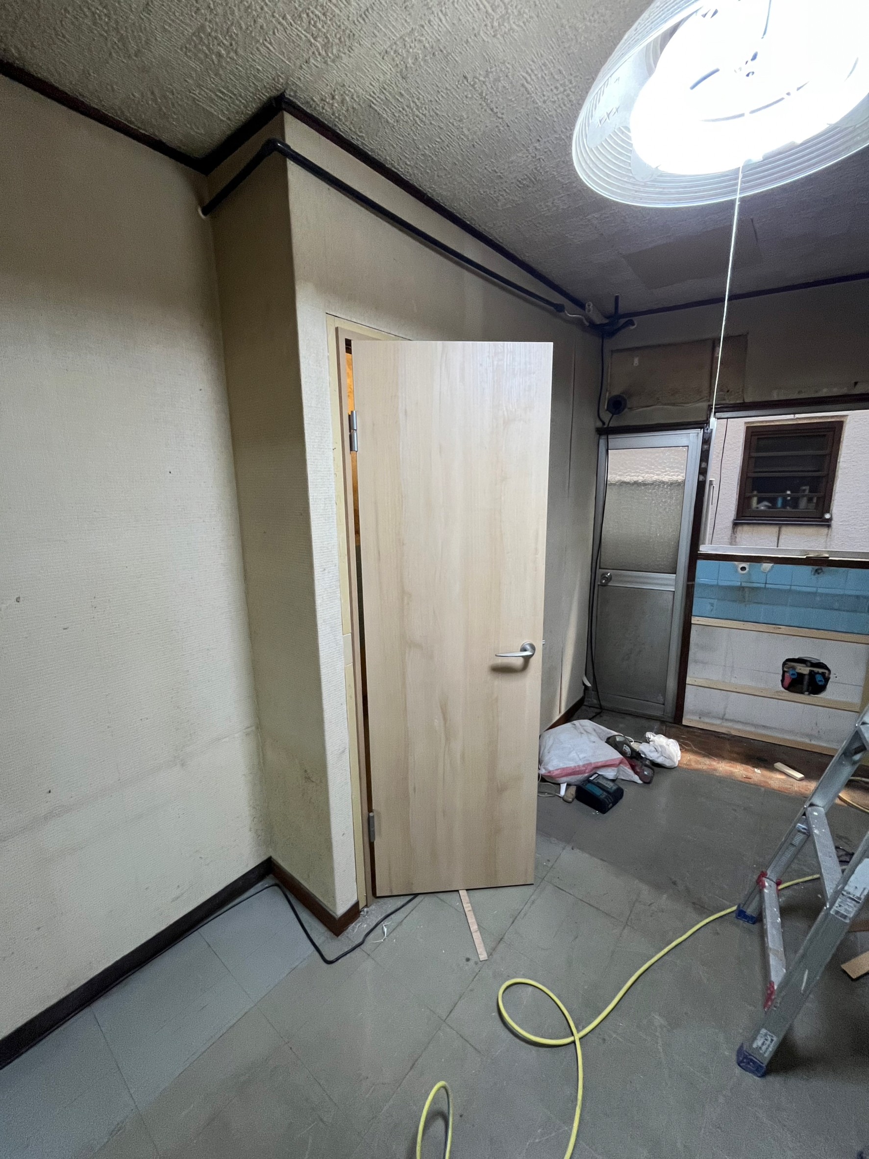 入口の建具も開き方向を既存と反対にしてPanasonicのベリティス PA型 開き扉の取付を行いました。